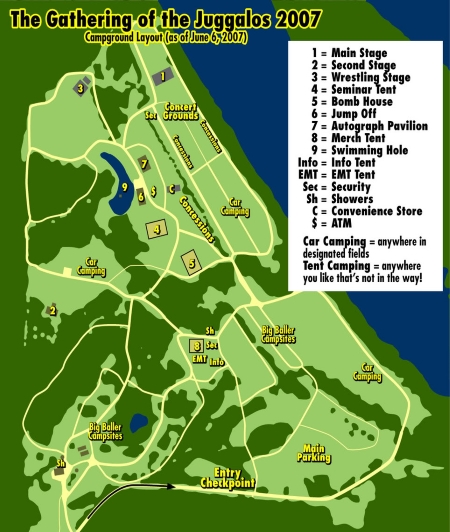 Here is a map of the grounds at Cave-In-Rock for the Gathering of the Juggalos 2007. For directions to Cave-In-Rock, click here.